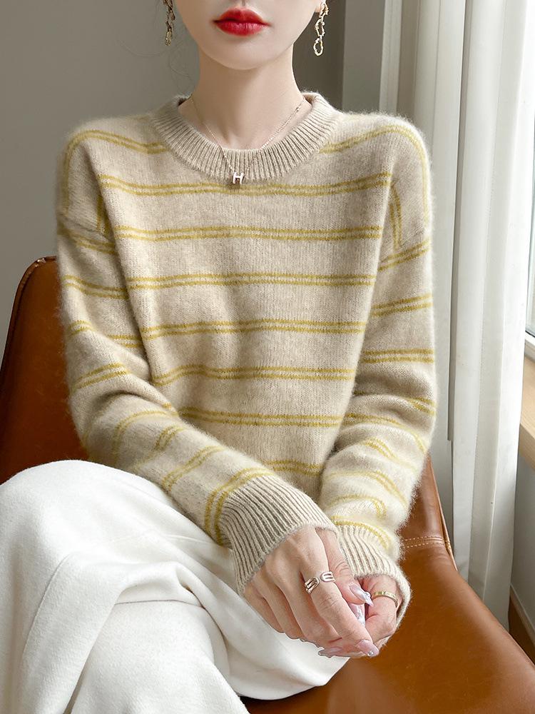 Experience the perfect blend of comfort and style with this women's sweater, part of the Autumn/Winter Collection. This seven-gauge, thick knitted pullover is designed with a loose fit, ensuring maximum coziness during the cooler months. Made from pure wool, it offers superior warmth and a soft touch. The sweater features a classic round neckline and long sleeves, making it a versatile addition to any wardrobe. Ideal for layering or wearing on its own, this piece is perfect for creating effortless, stylish looks.