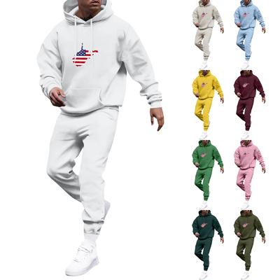 Men's Solid Color Flag Print Hooded Universal Versatile Hooded Sweatshirt Sweatpants Casual Sports Suit