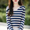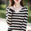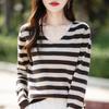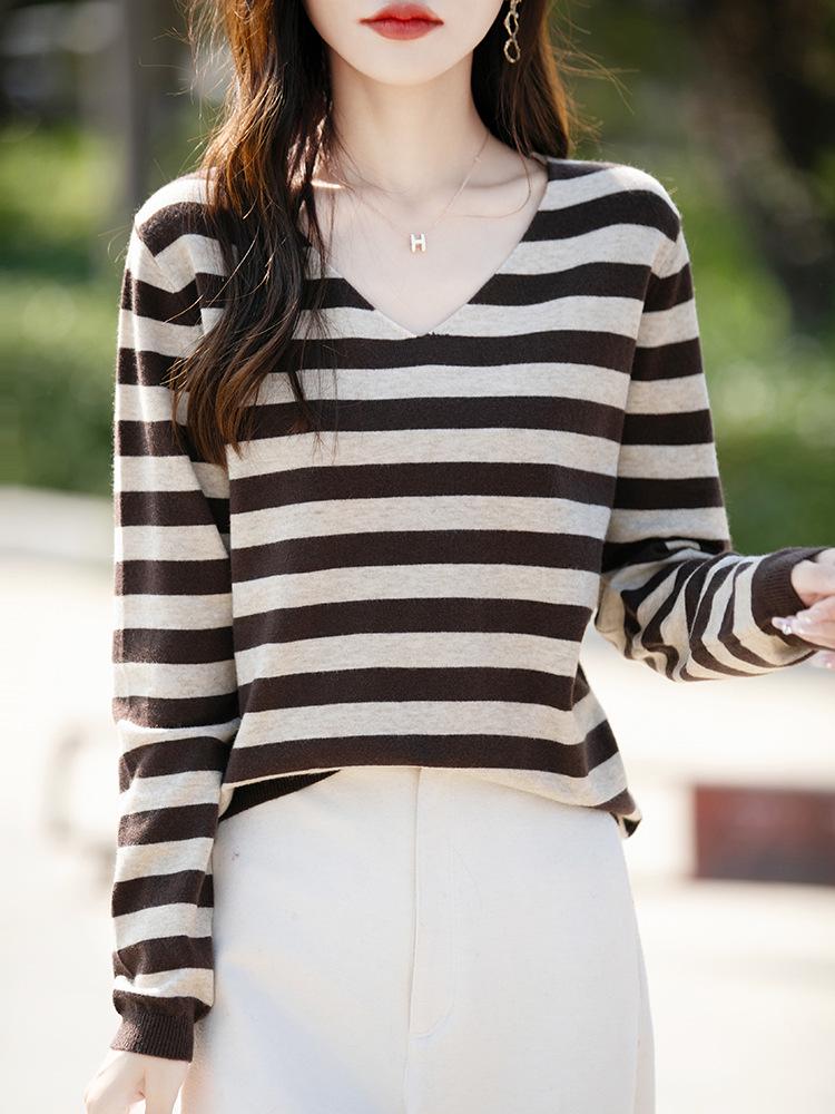 Introducing a stylish addition to your autumn wardrobe: this women's loose knitted sweater pullover embodies French design elegance with its sophisticated stripes. Crafted from soft acrylic material, it ensures both comfort and warmth, making it perfect for chillier days. The V-neckline adds a touch of femininity, while the long sleeves provide extra coverage. The inclusion of andy velvet fur details further enhances its luxurious feel, making it an ideal choice for those who appreciate a blend of style and comfort.
