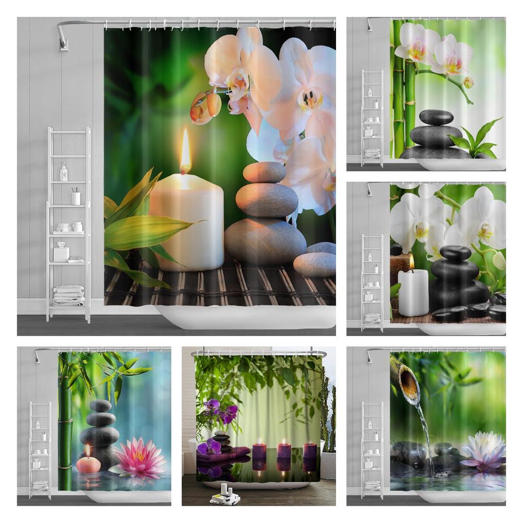 Spa Buddha Water Yoga Shower Curtain Rural Landscape Creek Stone Lotus Buddha Waterproof Polyester Bathroom Curtain with Hooks