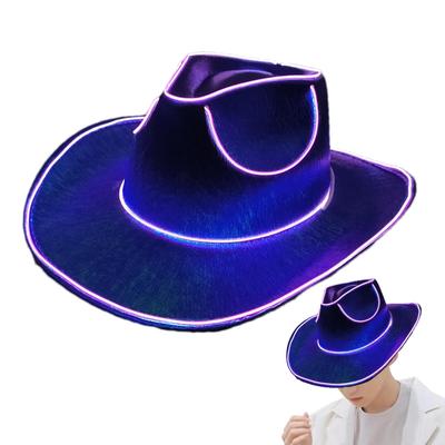 Holiday Light Up Supplies Western Cowboy Hat Fluorescent Party Cap LED Cowboy Cowgirl Hat Shining Rave Party