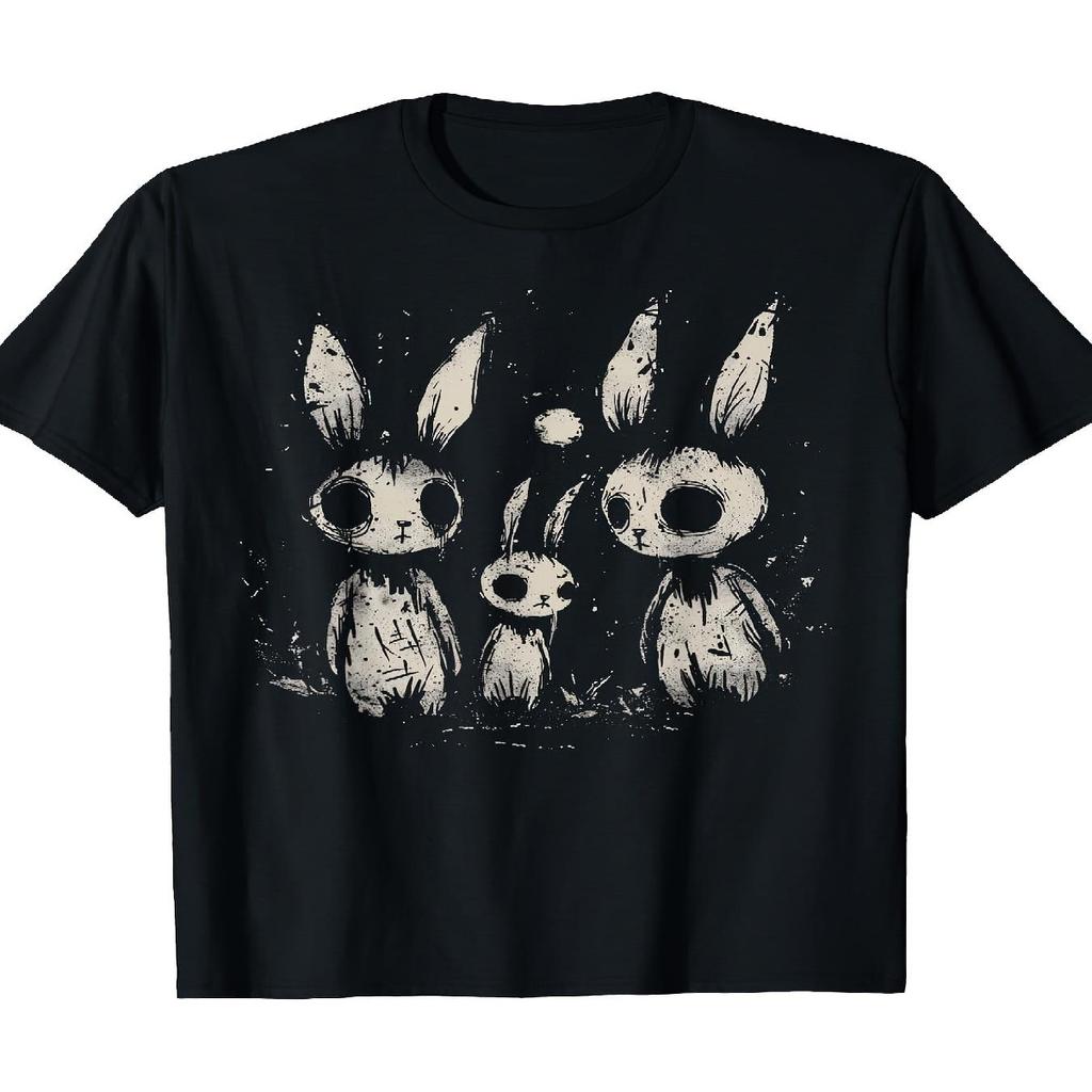 220g Creepy Cute Bunny Rabbits Horror Goth Grunge Alt Aesthetic T-Shirt