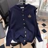 Women's Plus Size Retro Preppy Embroidered Cardigan Jacket - Spring Casual Slimming Knitted Outerwear