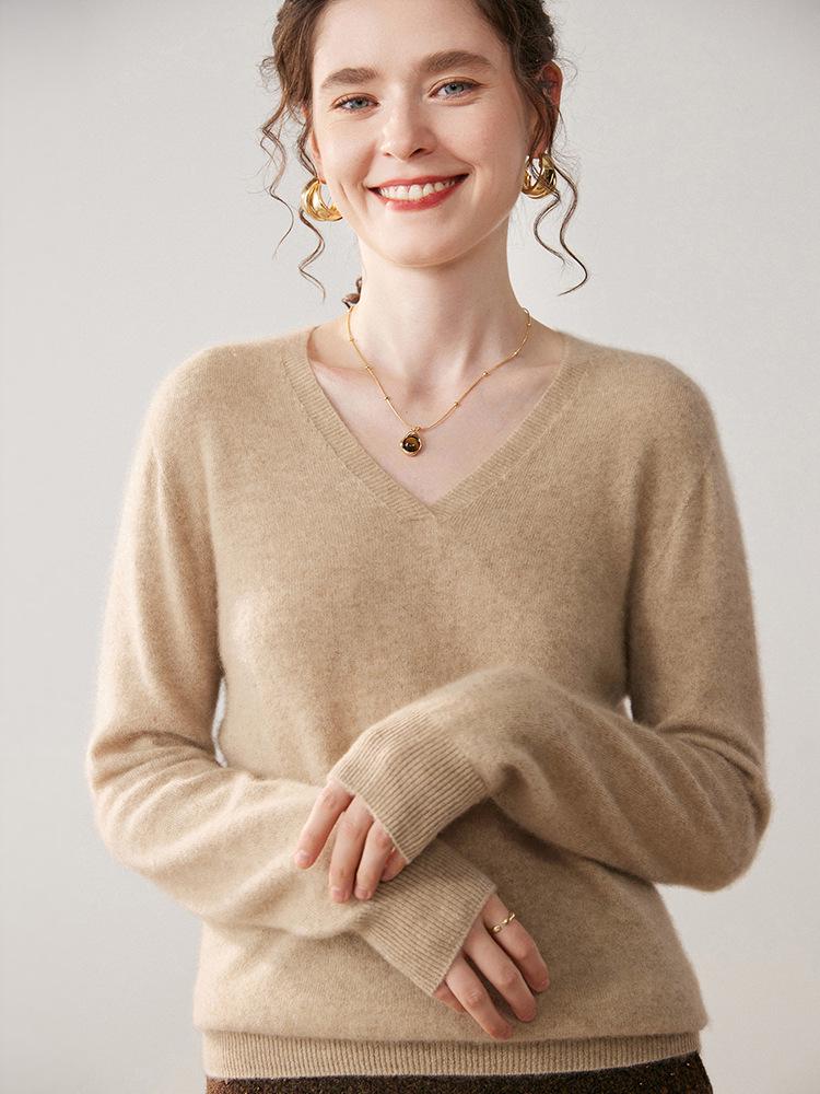 Indulge in luxurious comfort with this cashmere knit sweater, featuring a classic solid pattern and a flattering V-neckline. Designed with long sleeves and a loose fit, this pullover offers both style and ease for any occasion. The knitted cashmere material provides warmth and a soft, sumptuous feel, making it a perfect addition to your wardrobe for cooler days.