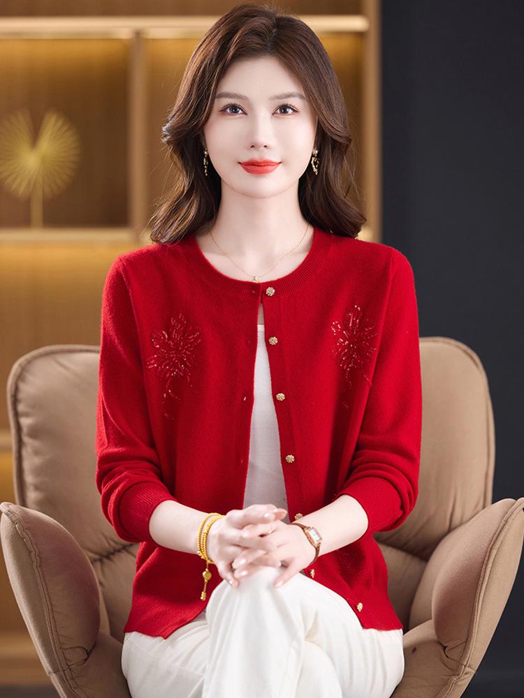 2025 Women's Luxury Wool Cardigan Sweater: Elegant Wear for Middle-Aged & Elderly