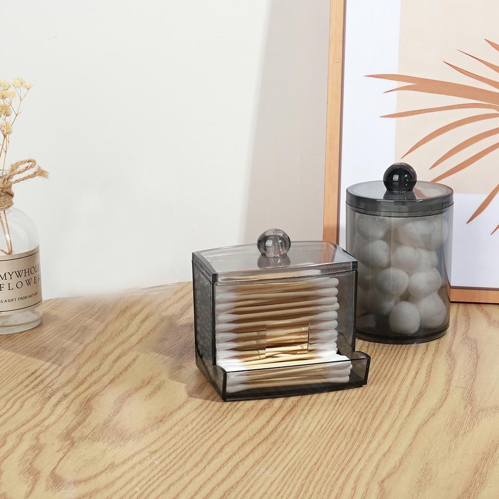 2pcs Qtip Holder Bathroom Container Organizer with Lids, Storage Box Cotton Ball/Swabs Dispenser, Apothecary Organizer Jar