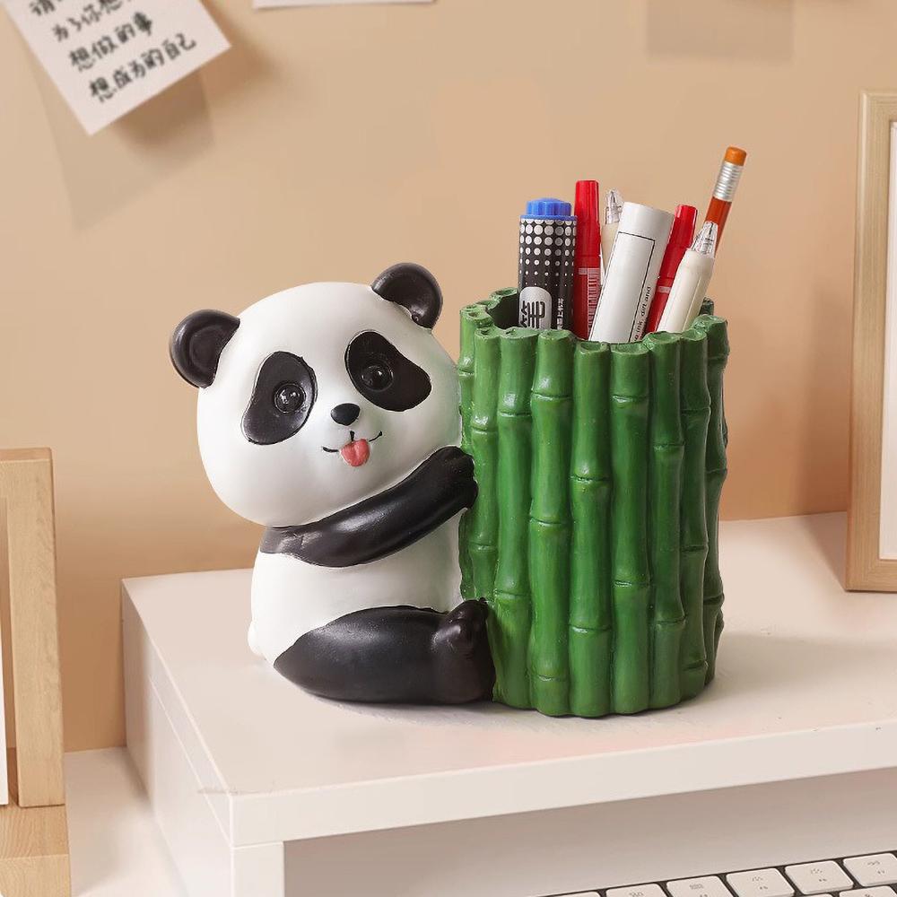 Minimalist Cute Panda Pencil Holder, Handmade Resin Desk Organizer for Office Desk, Kawaii Animal Statue for Collection