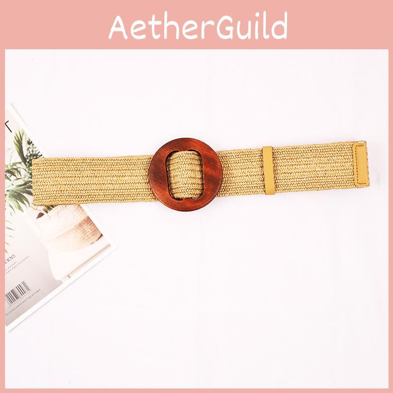 Weave And Waist Rope Wooden Round Buckle Women Belt Clothing Gift Accessories