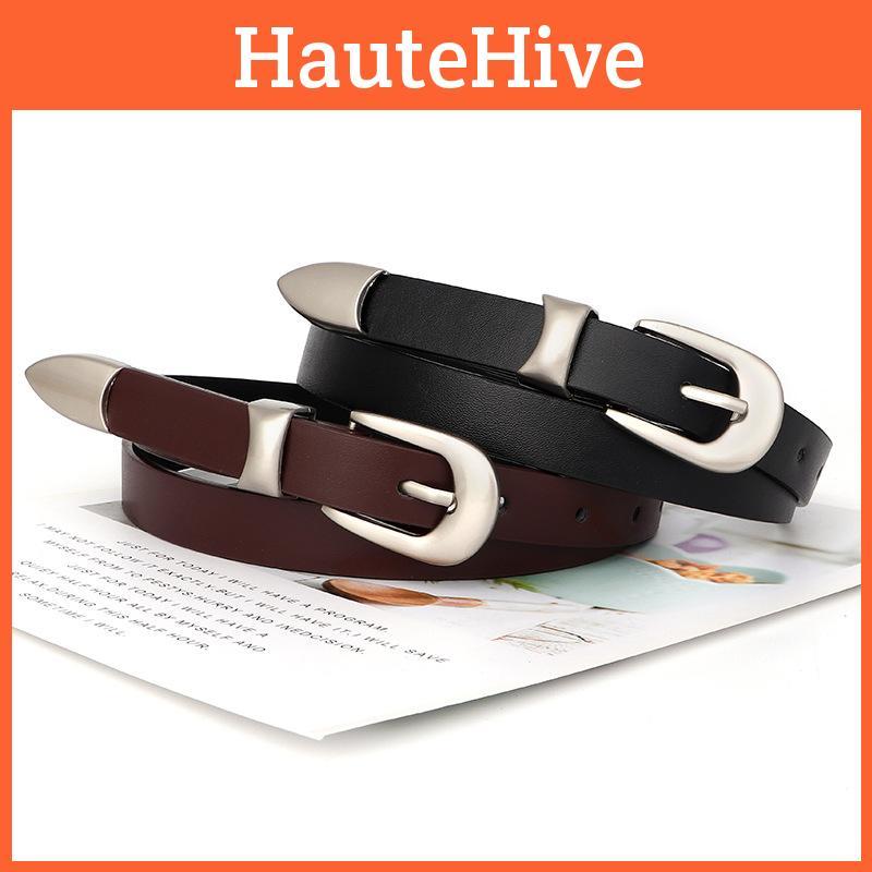 Simple Solid Color Silver Buckle Women Slim Waist Belt Versatile For Use Daily