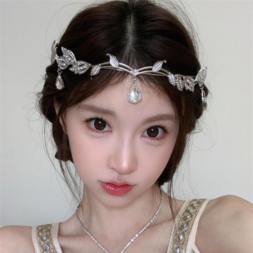 Leaves Shape Forehead Chain Rhinestone Forehead Ornaments Sweet Bride Tiara Wedding