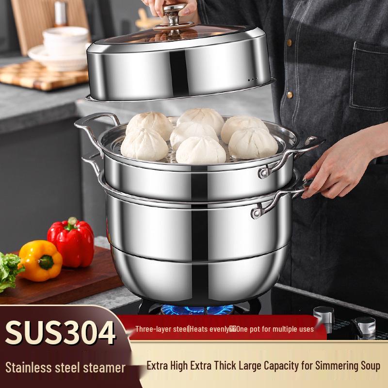 Three-Layer 304 Steel Steamer Pot with Large Capacity for Multi-Functional Cooking