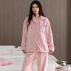 Stay cozy and stylish during the colder months with this delightful pajama set. Crafted from soft flannel, the set includes a long sleeve cardigan and warm coral fleece pants, ensuring maximum comfort and warmth. The charming cartoon panda design adds a playful touch, making it a perfect addition to your winter loungewear collection.