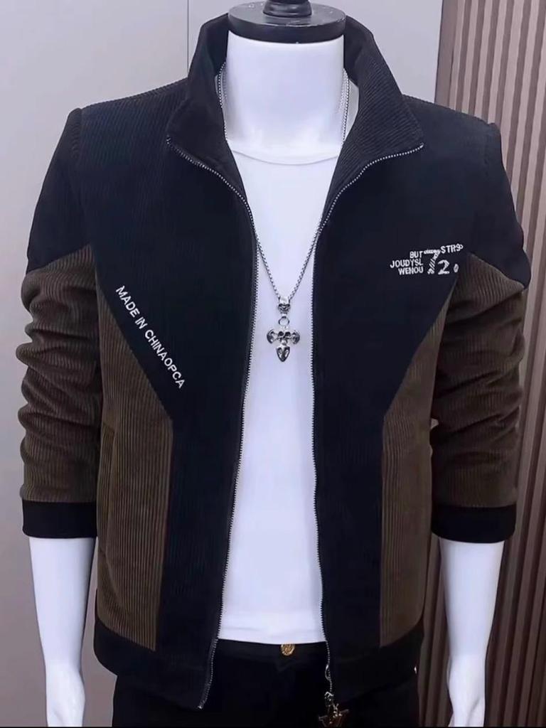 Men's Trendy Patchwork Corduroy Jacket with Stand-Up Collar - Slim Fit Spring/Autumn 2025 Edition