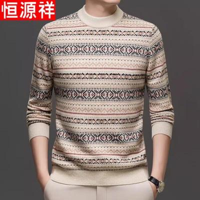 Hengyuanxiang Men's Round Neck 100% Wool Knit Sweater