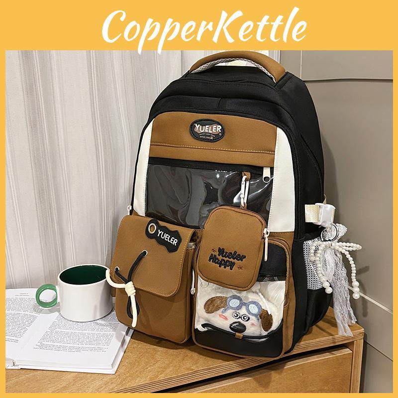 Sweet Blocked Color Letter Patter Student Backpack With Compartment Transparent