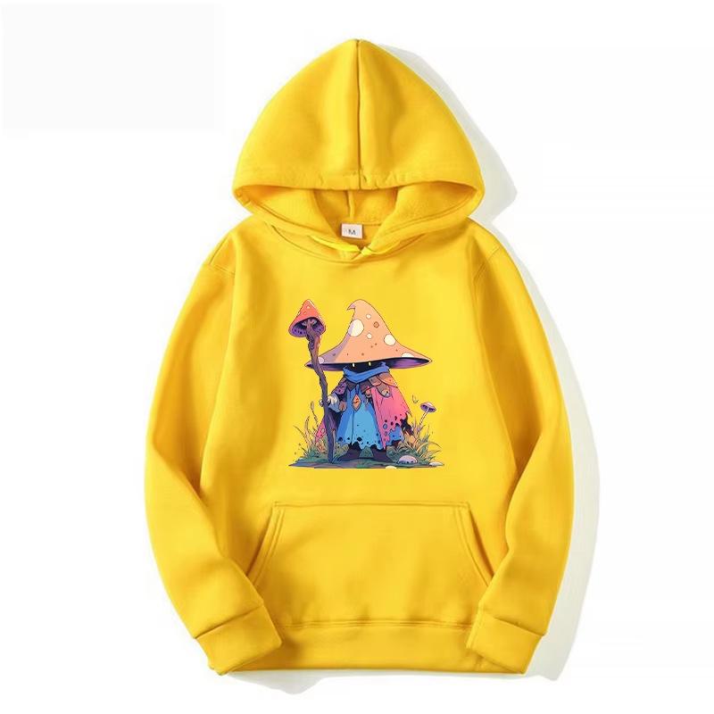Elevate your casual streetwear collection with this stylish hoodie featuring a whimsical cartoon mushroom elf print. Crafted from high-quality cotton material, it offers a standard thickness perfect for year-round comfort. The long sleeves and stand neckline add a trendy touch, while its slim fit ensures a flattering silhouette. Ideal for anyone seeking a unique and playful addition to their wardrobe, this pullover sweatshirt effortlessly combines fun design with practicality.