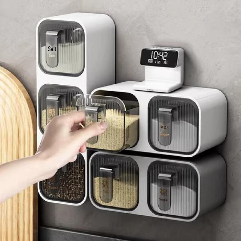 Wall-Mounted Punch-Free Dustproof Seasoning Box for Kitchen