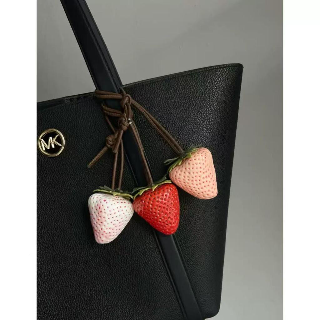 Strawberry Resin Pendant: Cute 3D Fruit Keychain & Bag Ornament.