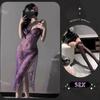 Purple Sexy Lingerie Suspender Pajamas Women's Suit Sexy Transparent Lace Uniform Temptation Split-ended Long Dress Small Chest