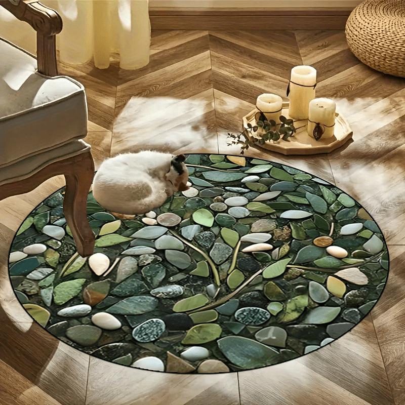 Luxurious Cobblestone Pattern Round Shape Floor Mats Kitchen Hallway Runner Rug Bedroom Living Room Soft Carpet Non-slip Area Rug