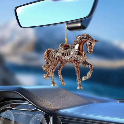 Horse Acrylic Ornament Elegant 2D Car Mirror Pendant Christmas Tree Hanging Decor DIY Crafts Unique Gifts