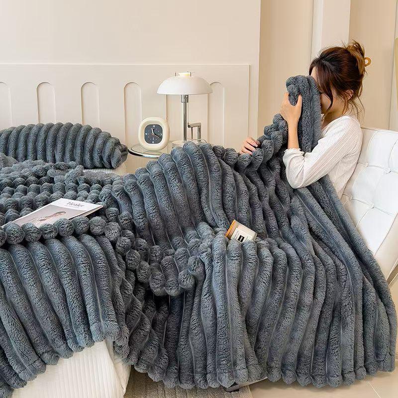 Thick Rabbit Fur Winter Blanket - Fleece Lined, Warm Coral Fleece, Flannel Sheet Bedspread