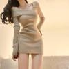 Elegant One-Shoulder Knitted Sweater Dress: Slim, Long-Sleeved Hip-Hugging Design for Autumn & Winter
