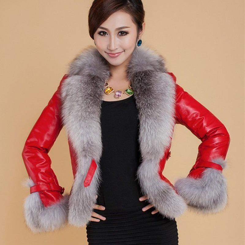 Autumn and Winter Leather Jacket Women's Short Slim-fitting Small Thickened Coat Imitation Fox Hair