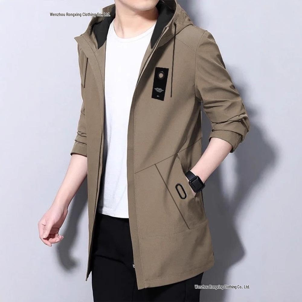 2025 Men’s Mid-Length Fleece-Lined Trench Coat – Trendy, Casual, and Warm for Autumn/Winter.