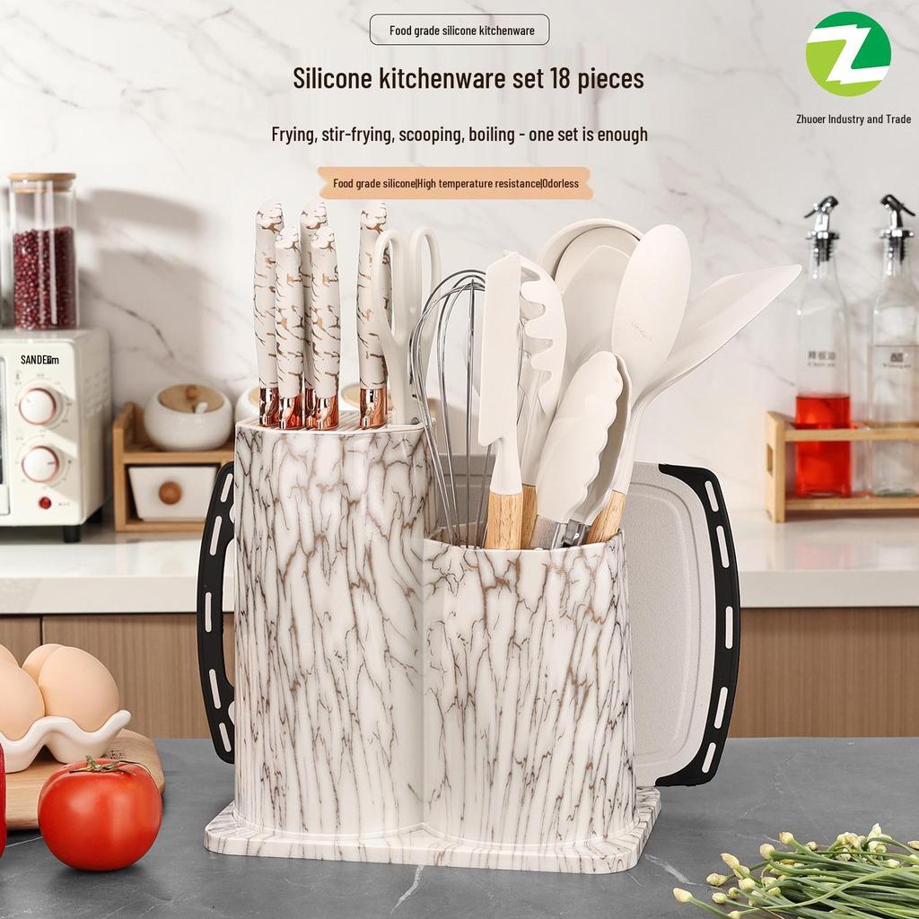 19-Piece Octagonal Silicone Kitchen Utensil Set with Non-Stick Spatulas, Spoons, and Knife Combo