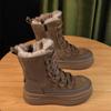 Winter 2025 Women's Mid-Calf Leather and Fur Snow Boots with Thick Soles and Warm Velvet Lining