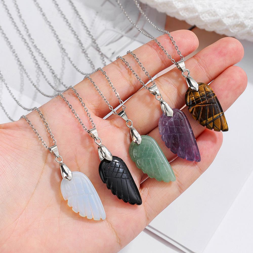 Natural Crystal Angel Wings Pendant Necklace - White Bohemian Charm Jewelry