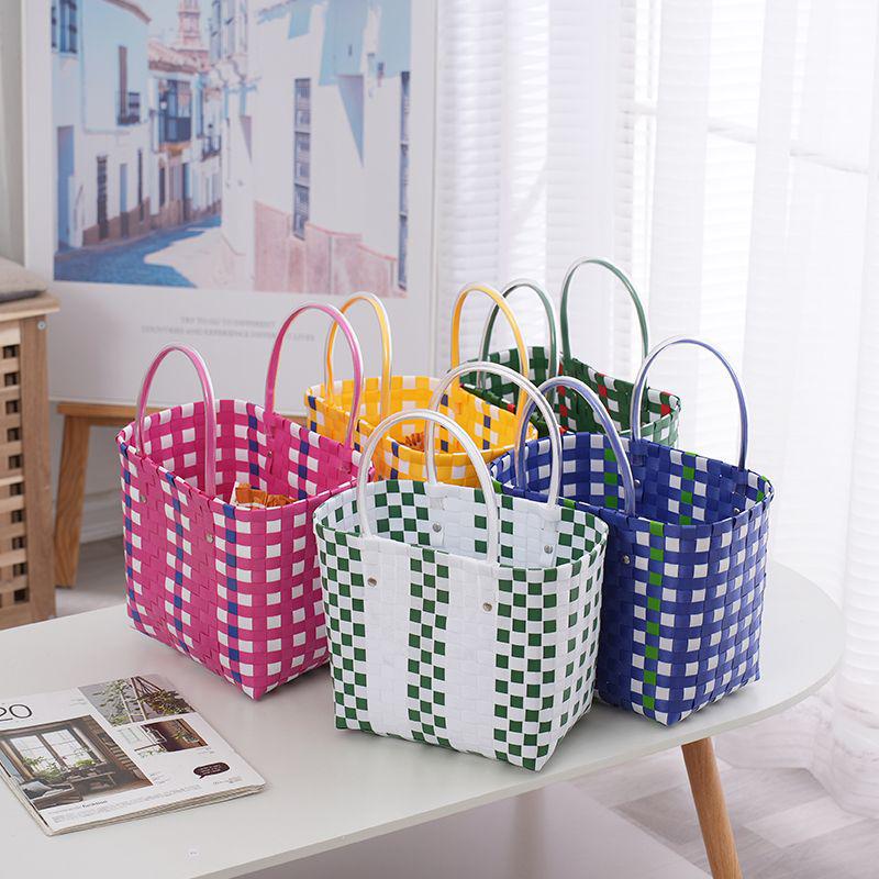 Handmade PVC Woven Bag: Versatile Home, Vegetable, Bath, and Beach Basket