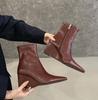 Slope Heel High Heel Short Boots 2025 New Autumn and Winter Pointed Elastic Thin Boots Black Retro Versatile Martin Boots Women