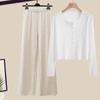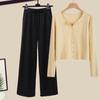 Two-Piece Women's Autumn Knit Set: Korean Short Sweater & Casual High-Waist Wide-Leg Pants