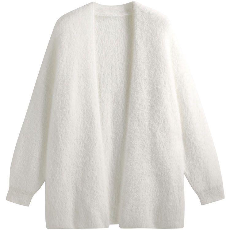 Women's Mink Fleece Cardigan Jacket Solid Color Loose Soft Warm Fleece Knitted Cardigan Knitted Top