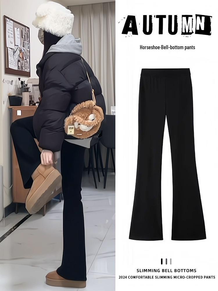 Experience comfort and style with these high-waisted bootcut pants, perfect for the cooler seasons of spring, autumn, and winter. Featuring a slimming design, these pants are fleece-lined to provide extra warmth without compromising on chicness. Crafted from woven fabrics, they offer a soft yet durable fit. The classic black color adds versatility, making them a staple piece that complements any wardrobe. Ideal for both casual and semi-formal occasions, these flared pants seamlessly blend functionality with fashion.