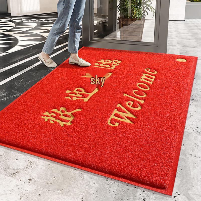 Welcome Red Silk Ring Commercial Entrance Mat - Dirt-Resistant, Anti-Slip PVC Floor Carpet.