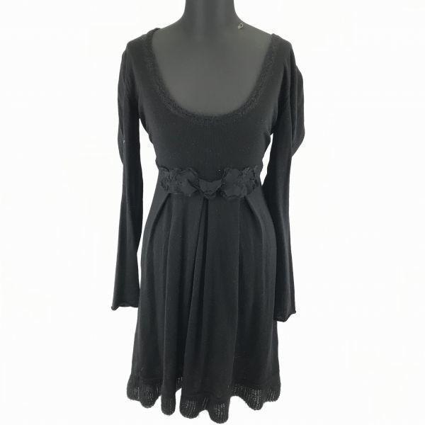 MAX&CO ★ Waist Ribbon Knit Dress [L/Black] Long Sleeves/Knee-Length/Décolleté Style ◆ ※Home G