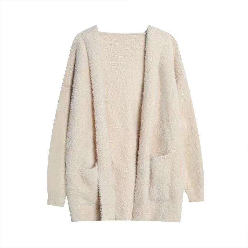 Women's Mink Fleece Hooded Cardigan Autumn Winter Thickened Warm Plush Knit Cardigan Jacket