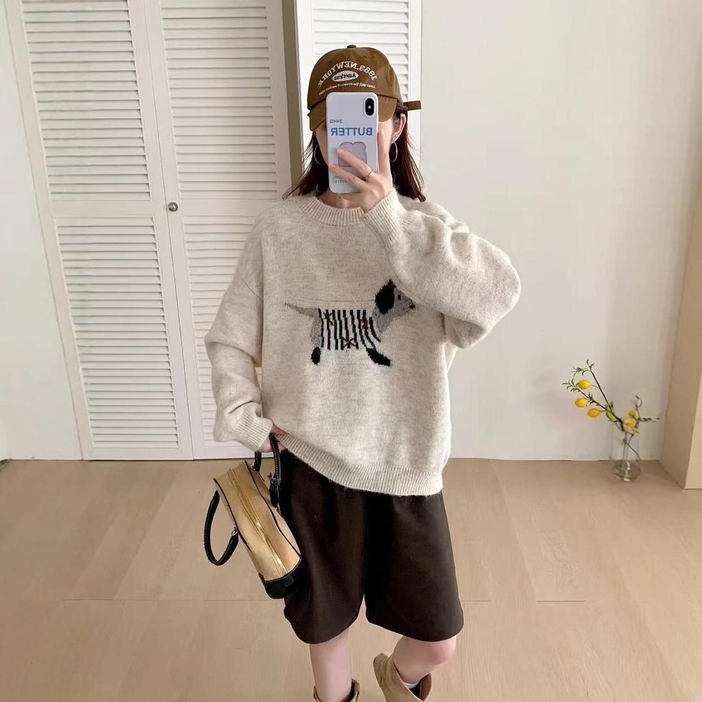 Women's Autumn/Winter 2025 Thickened Embroidered Puppy Pullover Sweater, Age-Reducing Knitted Layered Top
