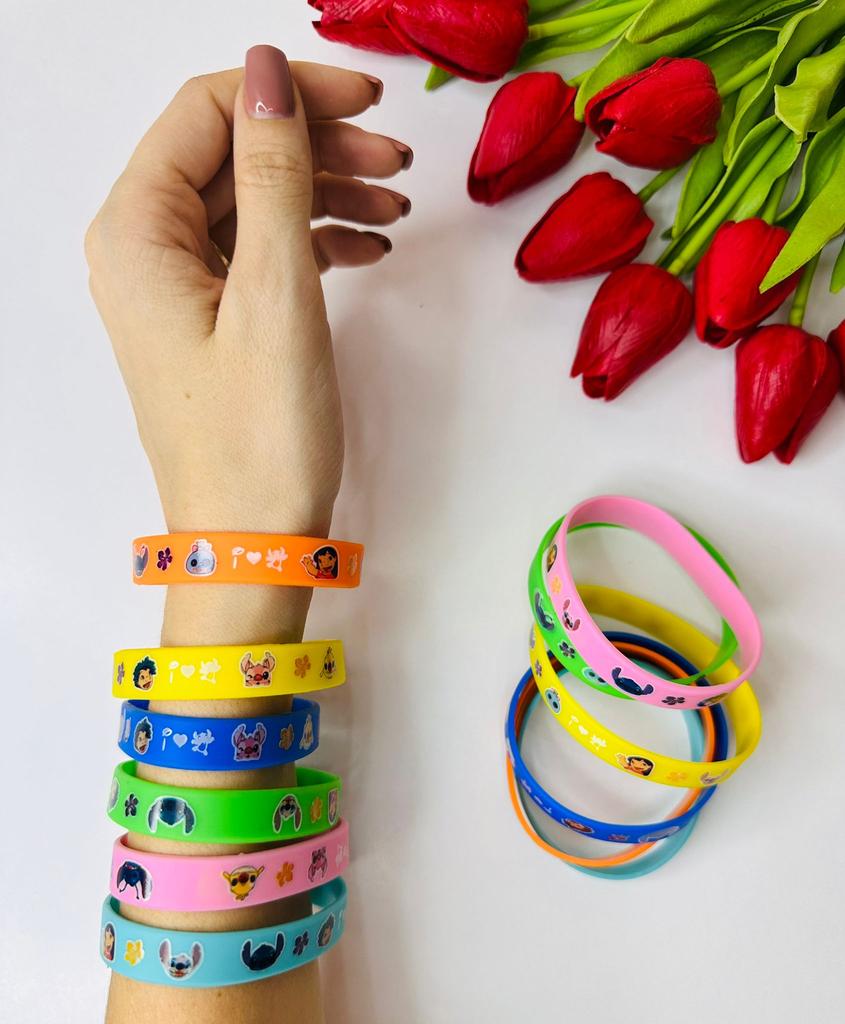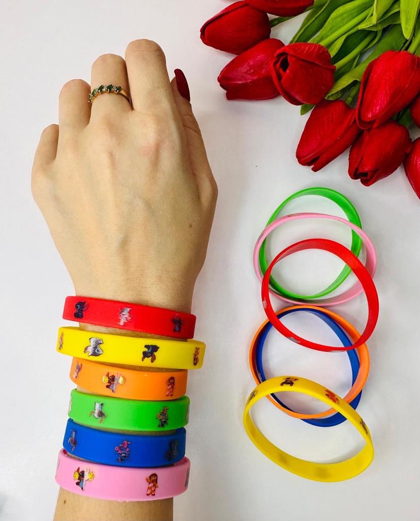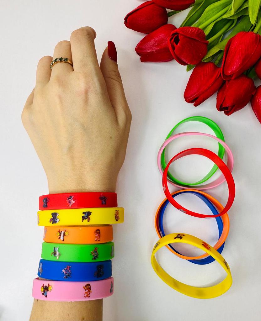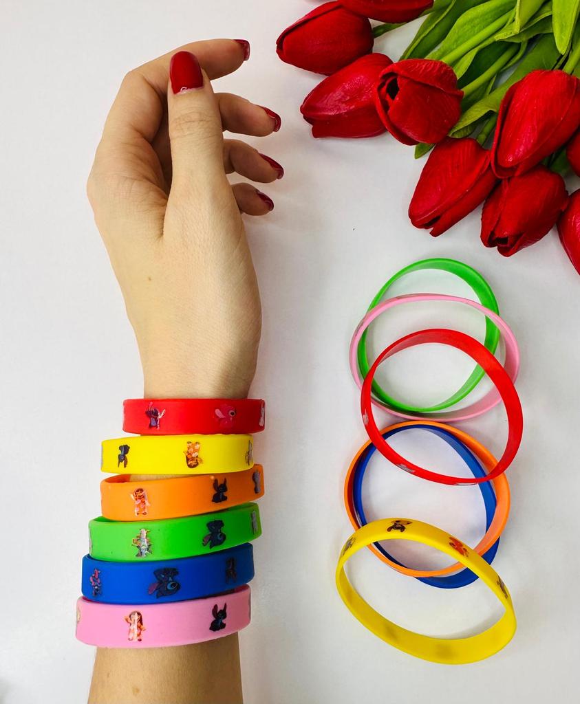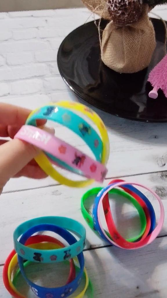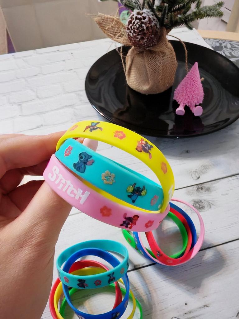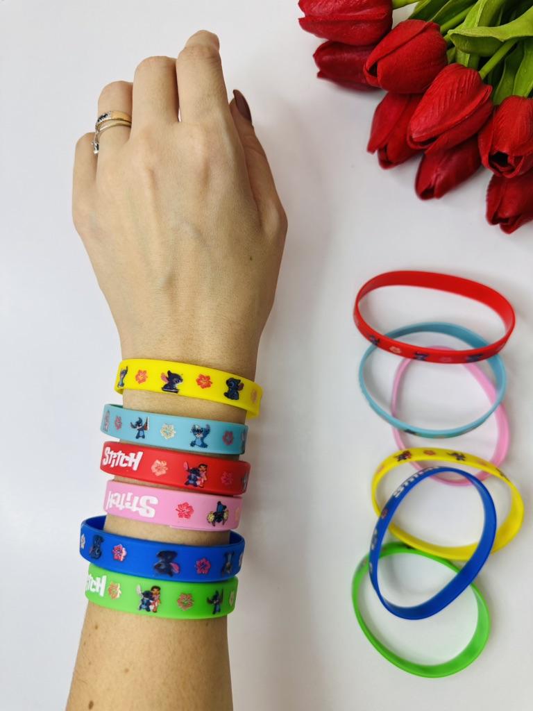 A set of 12 silicone bracelets with a Stitch cartoon design is simply a hit for any party! ๐ *Fun and beloved design* โ with the beloved character Stitch drawing a smile on every boy and girl's face. Perfect for Disney lovers! ๐ *Excellent filler for surprise bags* โ Every child will be happy to receive a colorful and cheerful bracelet, making it a great choice as a filler for a birthday bag or a prize in class. ๐ *Flexible and comfortable* โ made of soft silicone that fits most wrists โ both for children and teenagers. ๐งผ *Durable and Washable* โ Can be washed easily, lasts a long time even with daily use. ๐ก *Additional Uses* โ Also suitable as a classroom prize, a gift decoration, or even for everyday use as a fashionable accessory. If you're planning a party and want to upgrade the atmosphere โ these bracelets are the perfect choice.