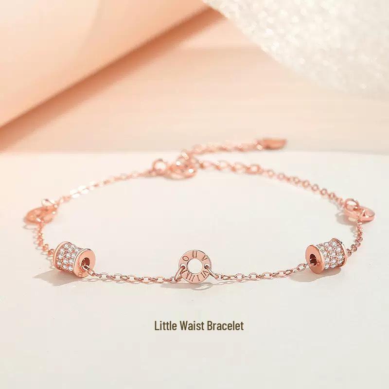 Korean Style Rose Gold Roman Numerals S925 Sterling Silver Bracelet for Women - Elegant Gift for Girlfriend