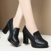 Fashion Comfortable Black Soft Leather Shoes Deep Mouth Spring Block Heels Shoes Women for Office Mom Model Versatile
