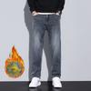 Mens High Street Jeans Fashion Straight Leg Warm Autumn Winter Men Classic Casual Plush Jeans Male Srtetch Baggy Denim Trousers Daily Wear