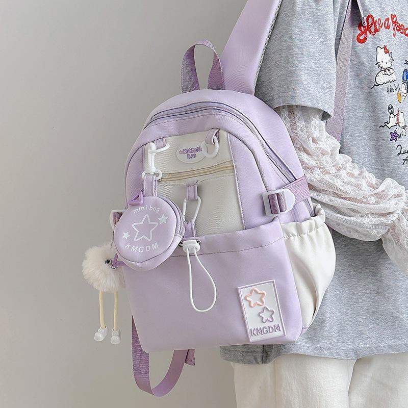 Summer New High-quality Small Fresh Color Contrast Letter Schoolbag Female Primary and Secondary School Students Light Shoulder Bag