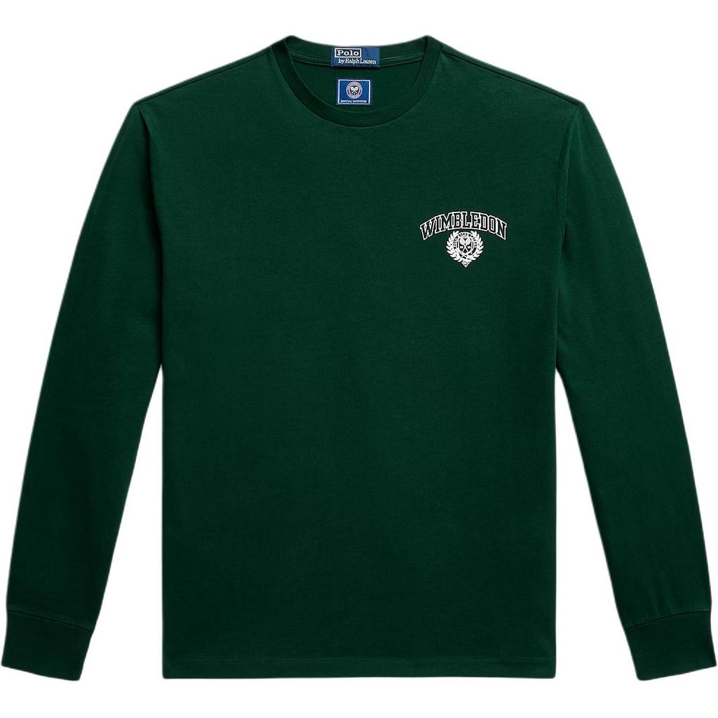 Polo Ralph Lauren Solid Ribbed Crew Neck Embroidered Long Sleeve Tennis Badge Classic Fit T-Shirt Unisex Tops Moss-Agate 710978222-001