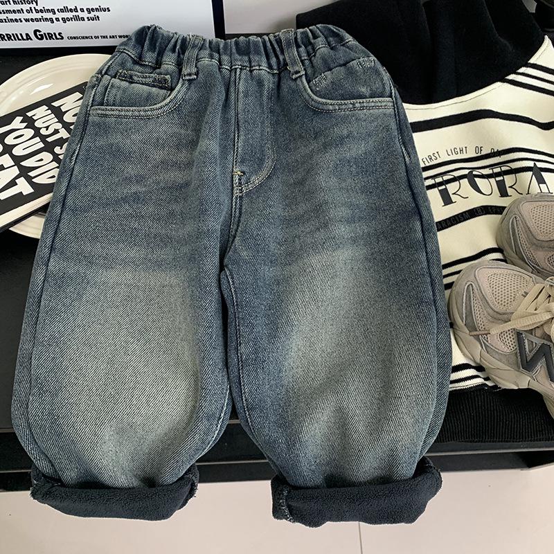 Keep your toddler cozy and stylish with these Korean-style fleece-lined jeans, perfect for winter 2025. Crafted with EVA material, these pants offer a unique blend of comfort and durability. The soft fleece lining ensures warmth during cold days, while the trendy design adds a touch of cool to your little one's wardrobe. Ideal for any winter outing, these jeans provide both functionality and fashion, making them a must-have for your child's seasonal collection.