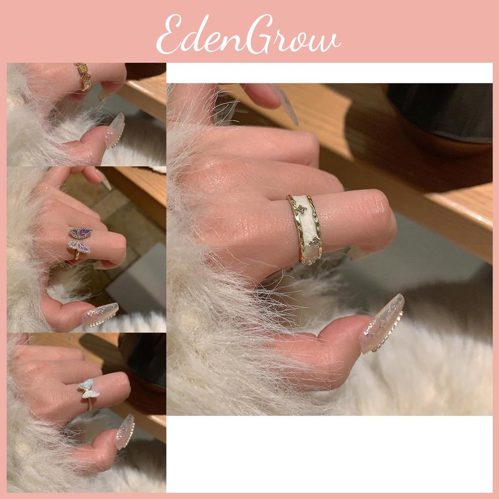 Chic Geometric Butterfly Ring For Women Fashionable Open Design Shell And Pearl Style