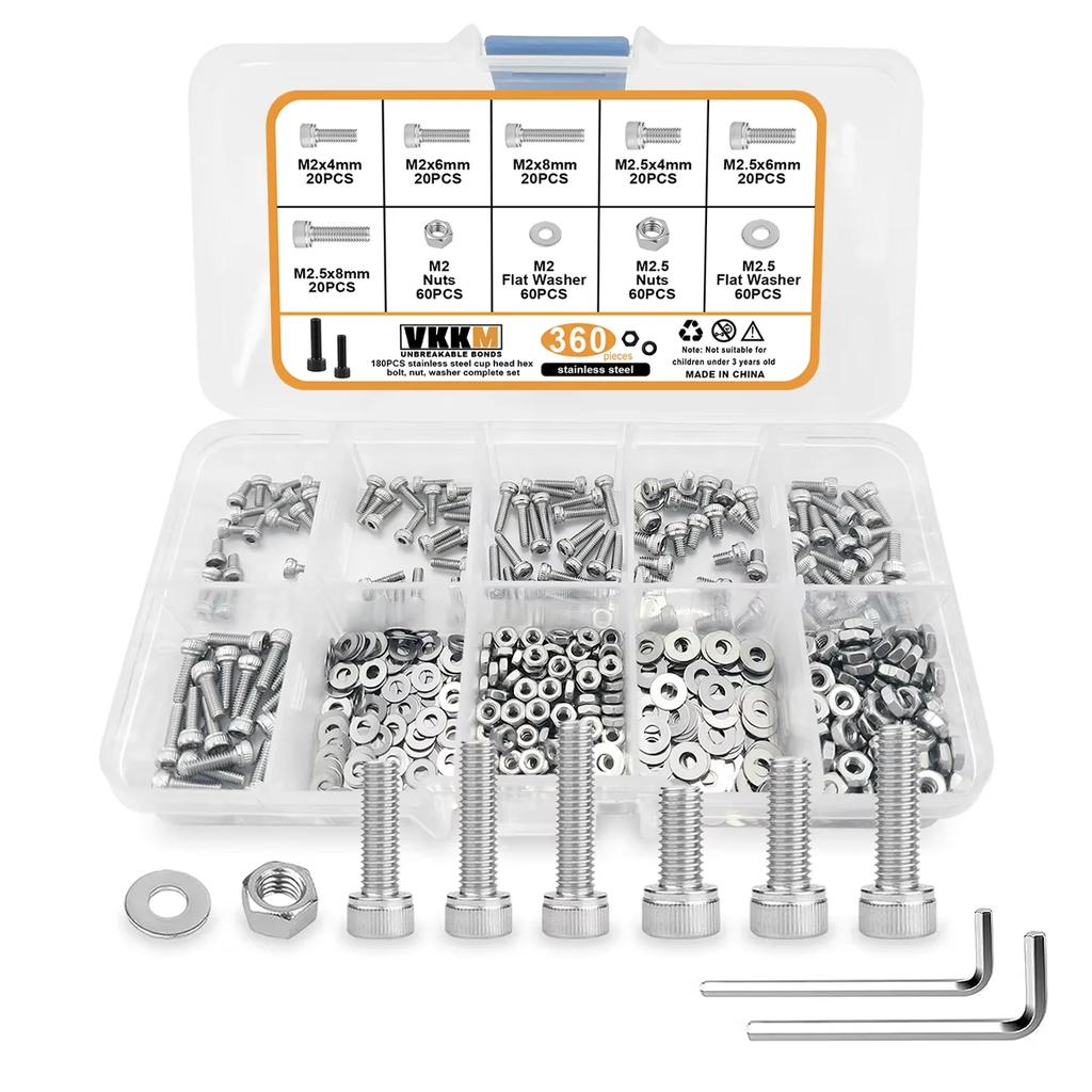VKKM 360-Piece 304 Stainless Steel Screw Set with Washers & Nuts In M2/M2.5 Multi-Specifications, Essential for Maintenance.